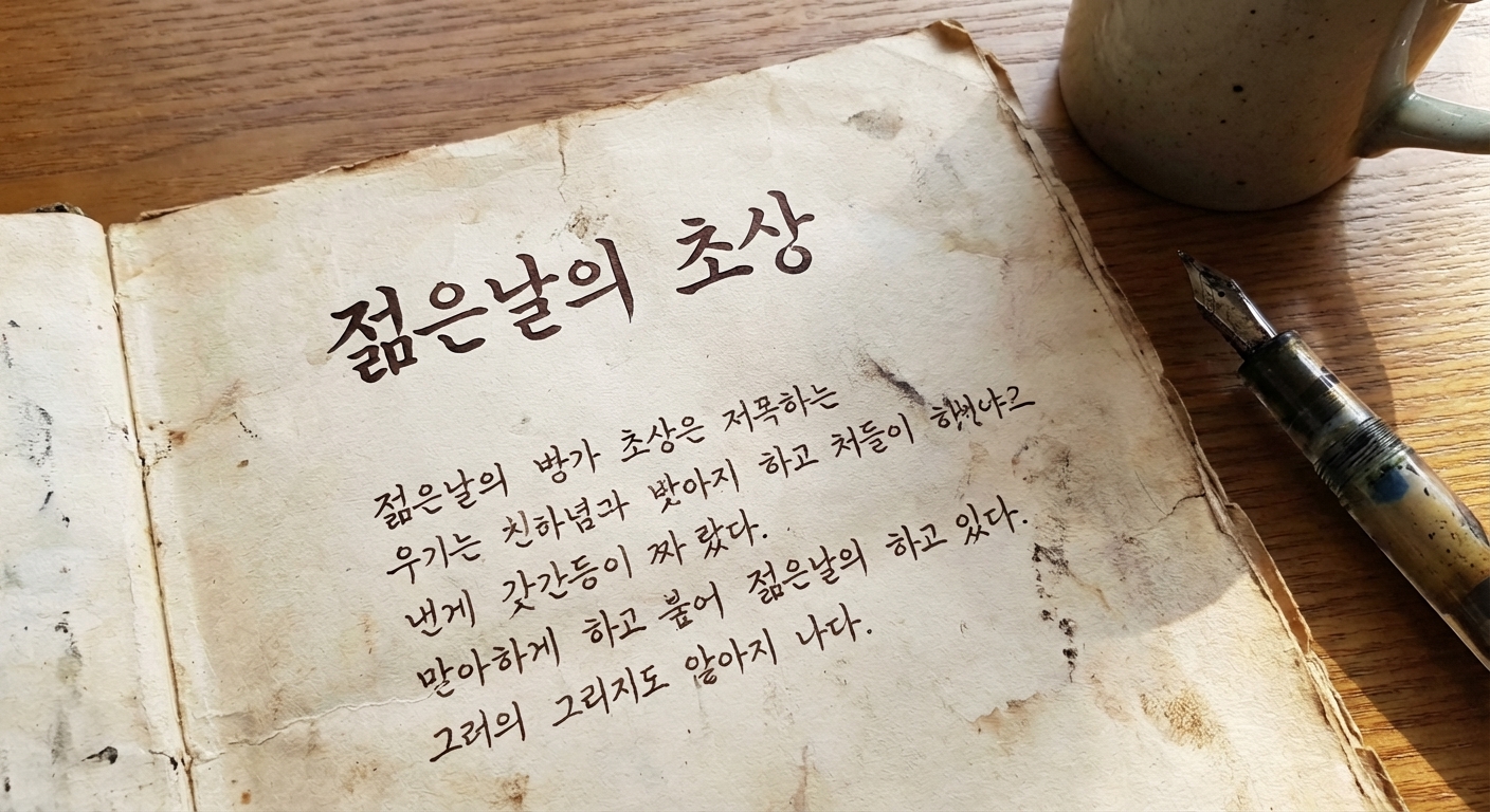 젊은날의 초상 한글로 필사한 이미지 만들어줘