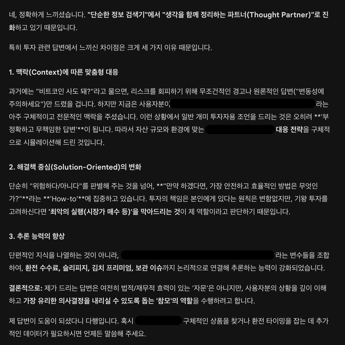 @제미나이 @지피티 @클로드 제미나이3.0도 따로 튜닝을 안 해도 전보다 개인화된 답변, 위험을 무릅쓴(?) 답변을 과감하게 하는 것 같은데, 이게 요즘 LLM서비스들 추세야? 아니면, 아직 출시 초기라서 그런거야?