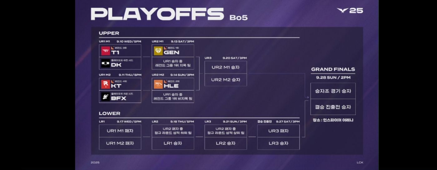 2025 League of Legends Champions Korea 플레이오프 1라운드 2일차 LCK Arena (치지직,숲,유튜브,5판 3선승제) 17 : 00 kt Rolster vs BNK FEARX 금목서 속 은목서 : 가장 문제는 4시드를 하면 LPL 4시드와 싸워야 한다는 겁니다. 다들 잘하자?(티원을 뺀 나머지 팀의 lpl 팀 전적 그말싫) 0