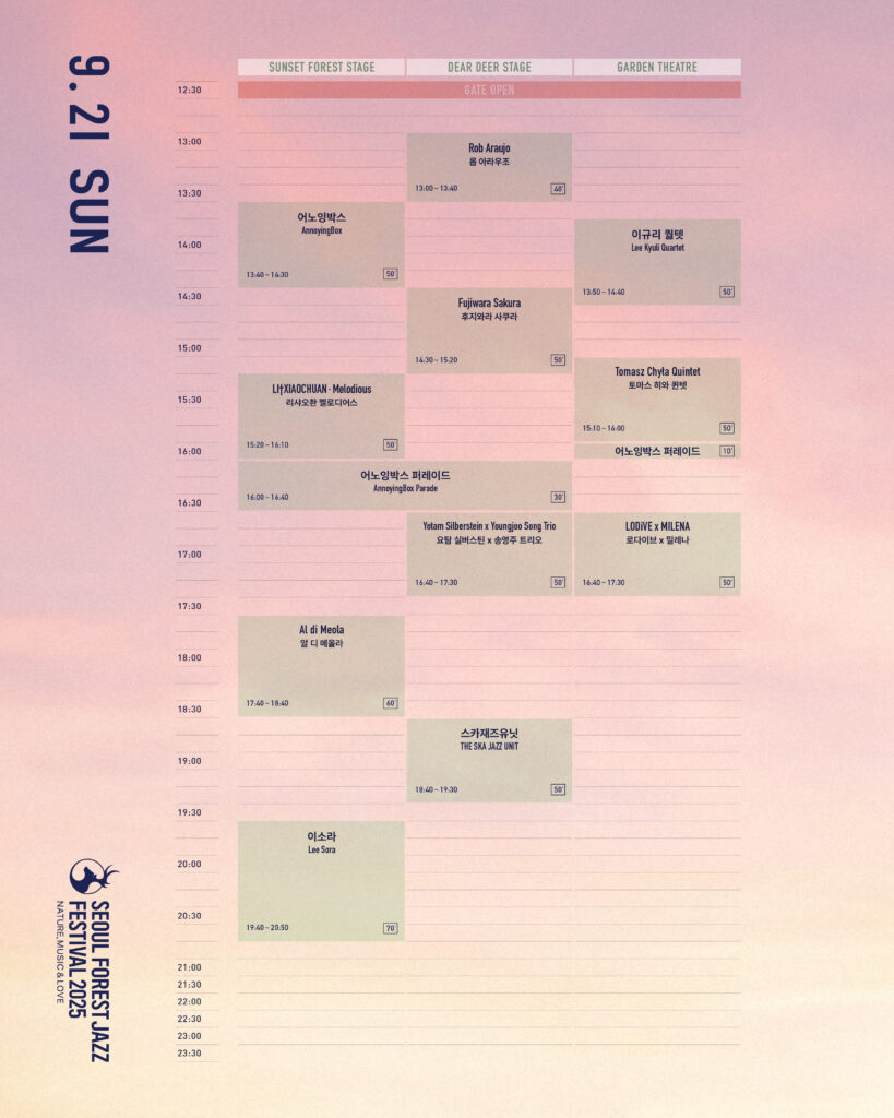 라인업: https://www.seoulforestjazz.com/article/9th-seoul-forest-jazz-festival-2025-final-line-up%e2%9c%a8/