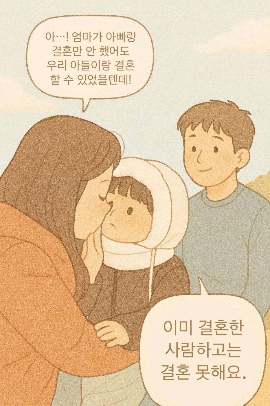 “아…! 엄마가 아빠랑 결혼만 안 했어도 우리 아들이랑 결혼할 수 있었을텐데!”