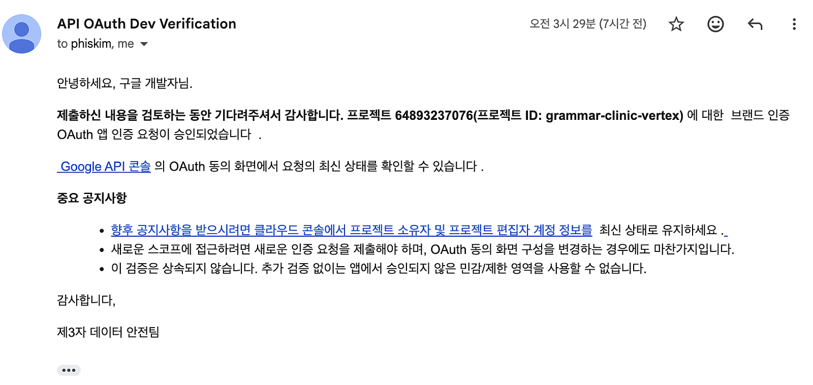 구글 OAuth 브랜드 인증을 통과했습니다.