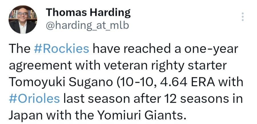 Subject   [MLB] 스가노 도모유키 1년 콜로라도행