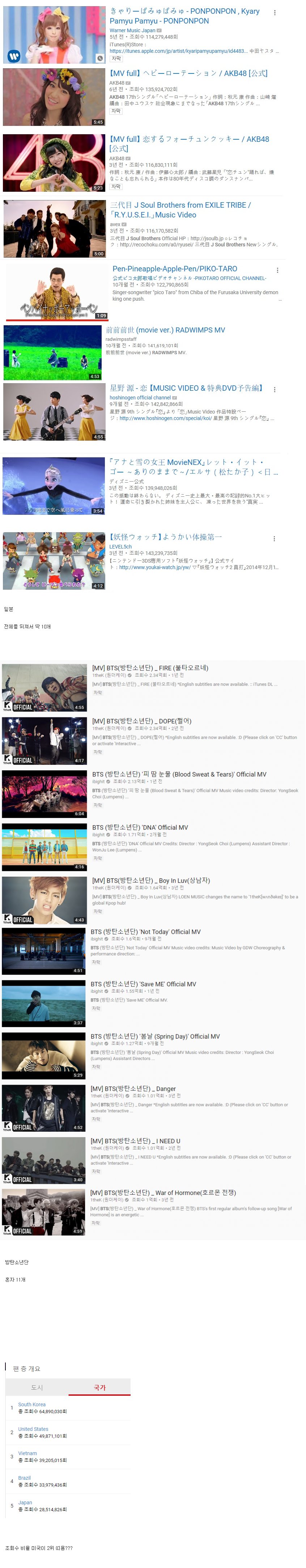 Subject   유튜브 조회수 1억.. BTS vs 일본