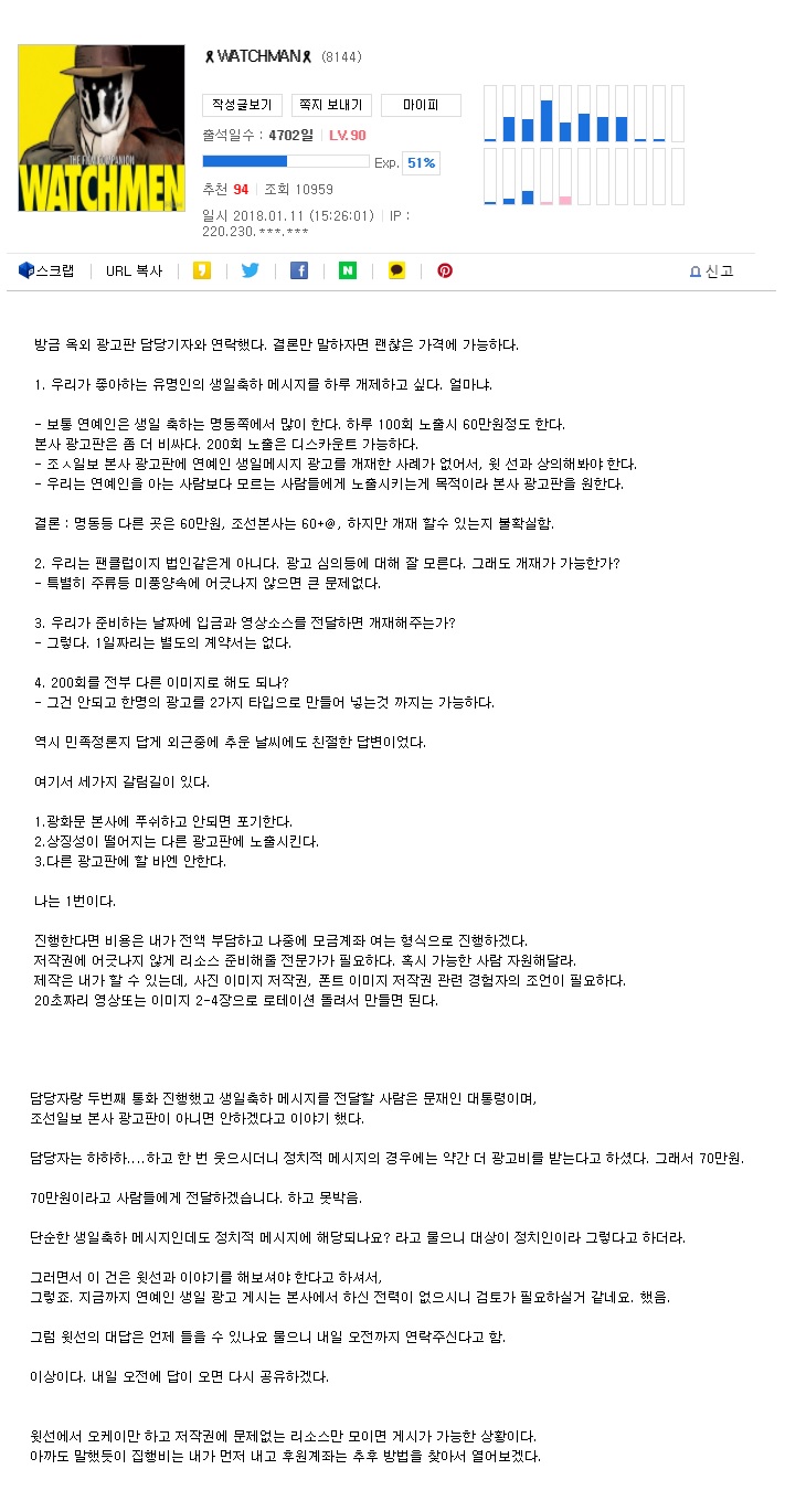 28250 광화문 전광판에 생일축하 광고를 올리려는 R모웹...? 8 은우 18/01/11 3728 2