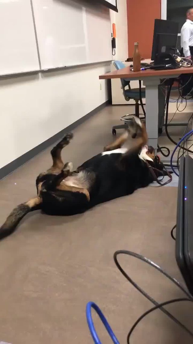큰 개를 가져와서 재롱을 피우게 하면 학생들이 긴장을 안하겠지? 0
