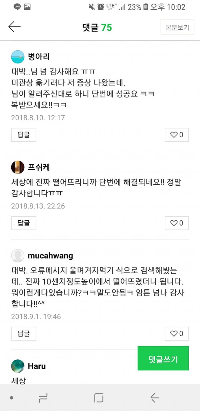 | Subject | 고장나면 떨어뜨려 보세요. |