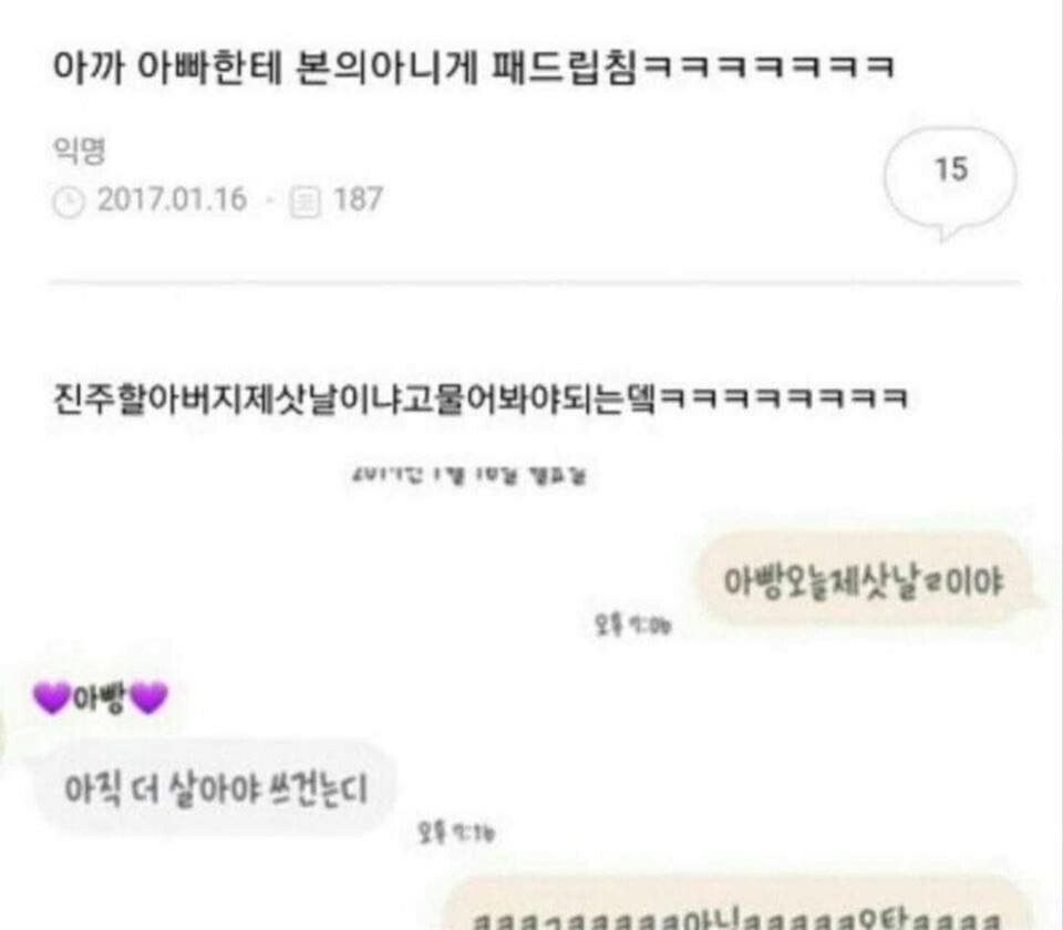 Subject   아까 아빠한테 본의아니게 패드립침ㅋㅋㅋㅋ