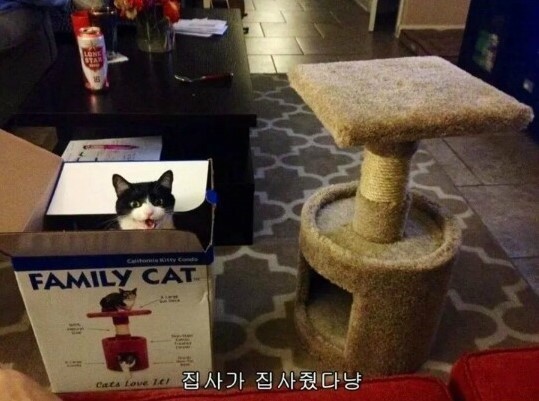 고양이는 캣타워보다 캣타워 포장 상자를 더 좋아합니다