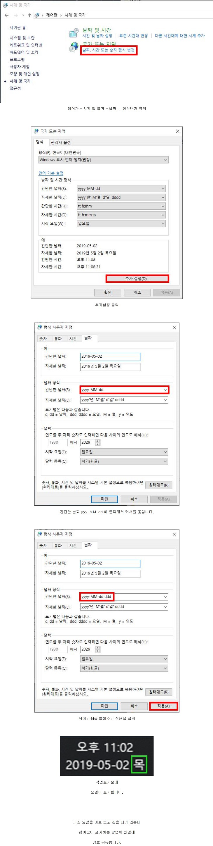 38338 윈도우 작업표시줄에 요일 표시하기.jpg 1 김치찌개 19/05/08 4900 1