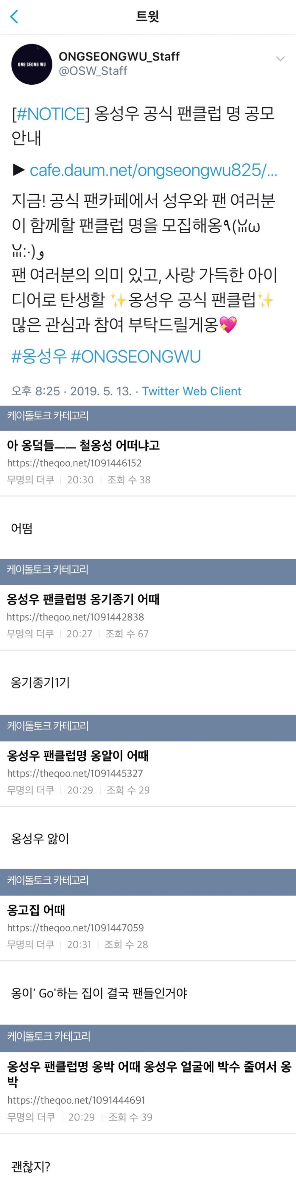 38475 옹성우 공식 팬클럽 이름 토론 16 다람쥐 19/05/16 4649 0