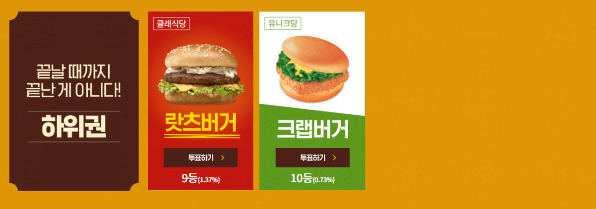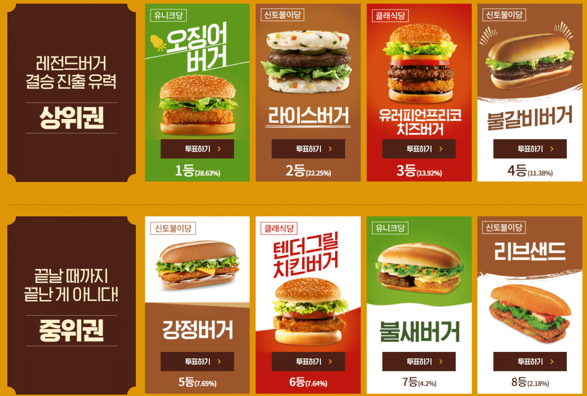 | Subject | 롯데리아 고전 버거 부활 경쟁 중간 투표 실황 |