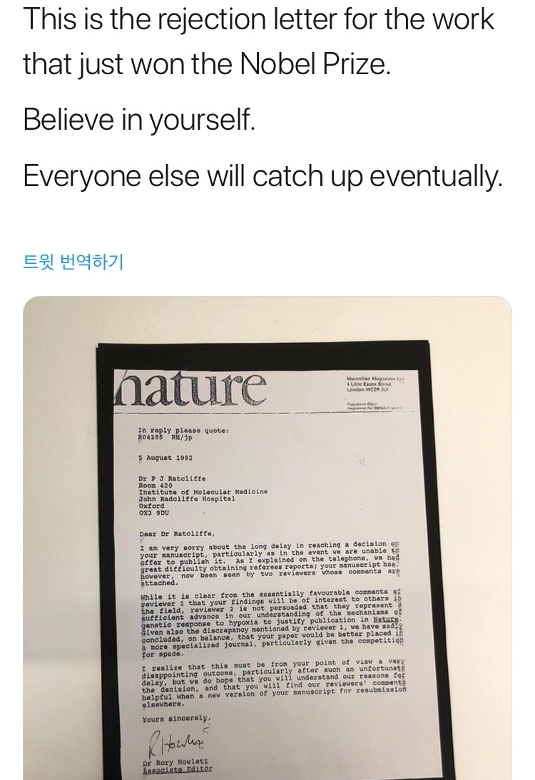 요번에 노벨 생리의학상 탄 natcliffe이 올린? 붙인? 거라는데