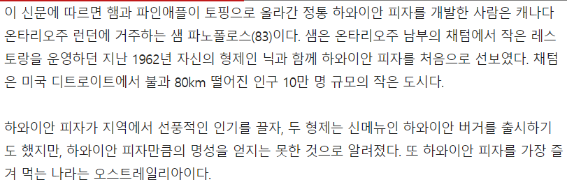 Subject   사람들이 모르는 하와이안 피자의 비밀
