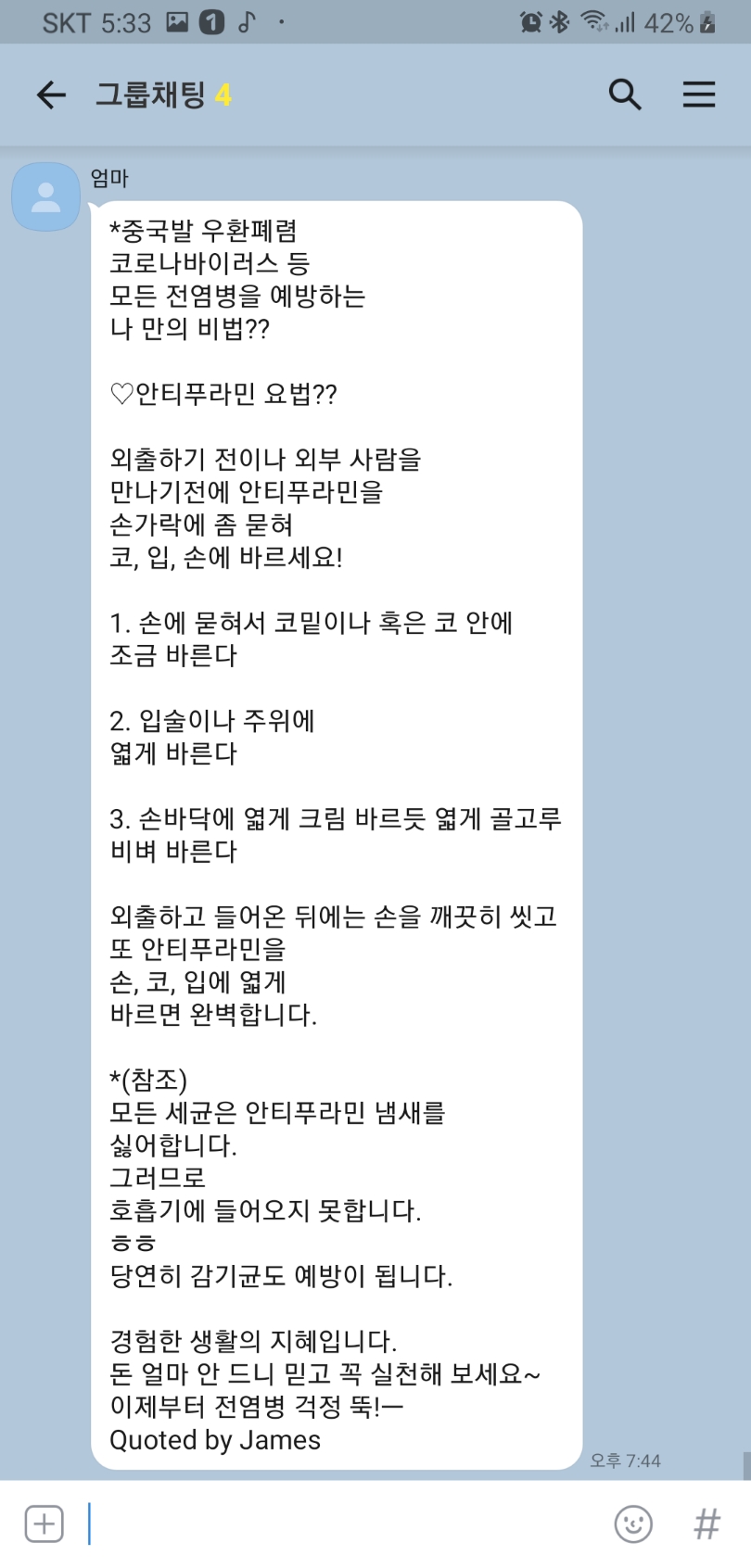 42823 신종코로나 관련 긴급 카톡 7 CONTAXND 20/01/30 4083 1