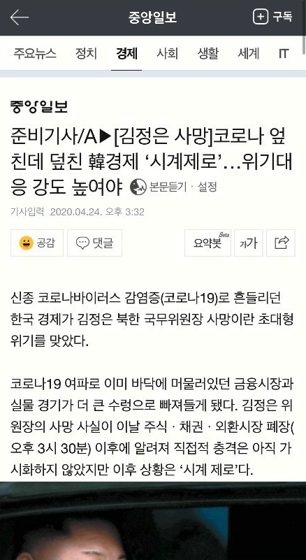 Subject   김정은 사망 기사가 나가버린 중앙일보