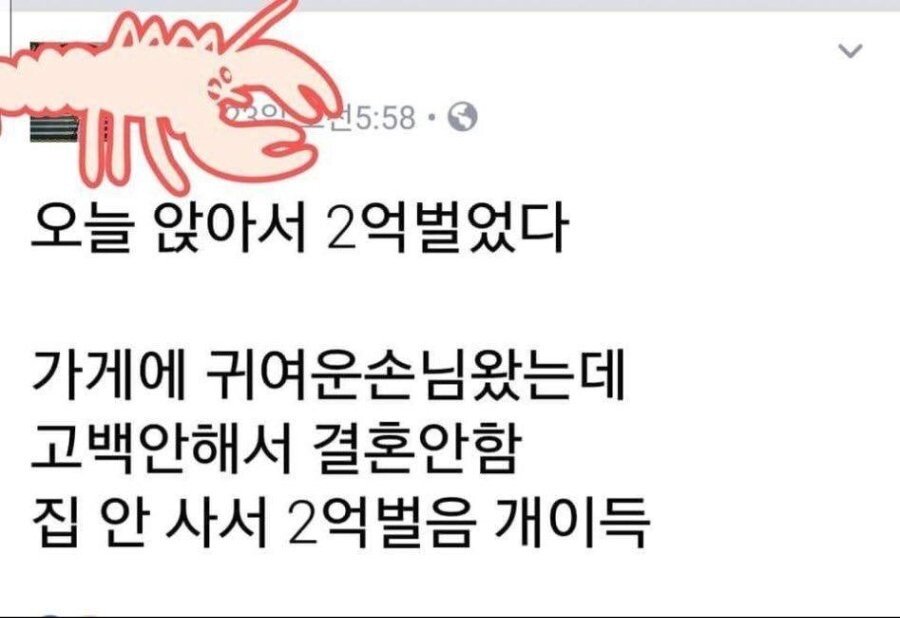 | Subject | 오늘 앉아서 2억 벌었다 |