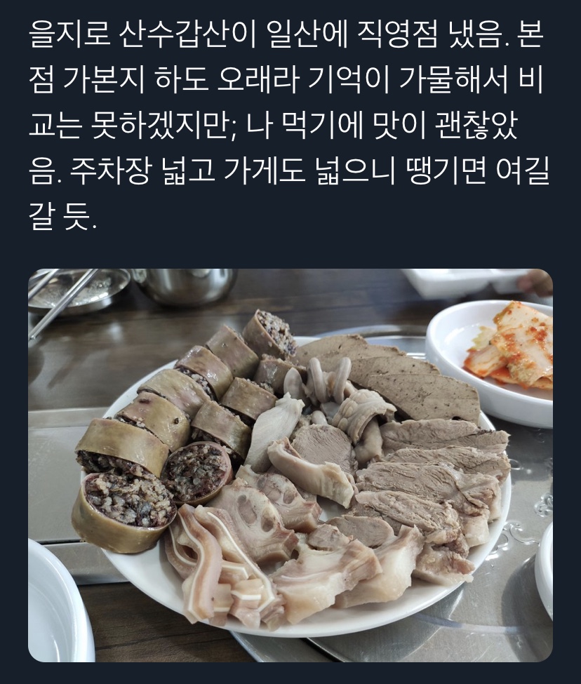 | Subject | 역시 일산 맛집은 산수갑산이지 |