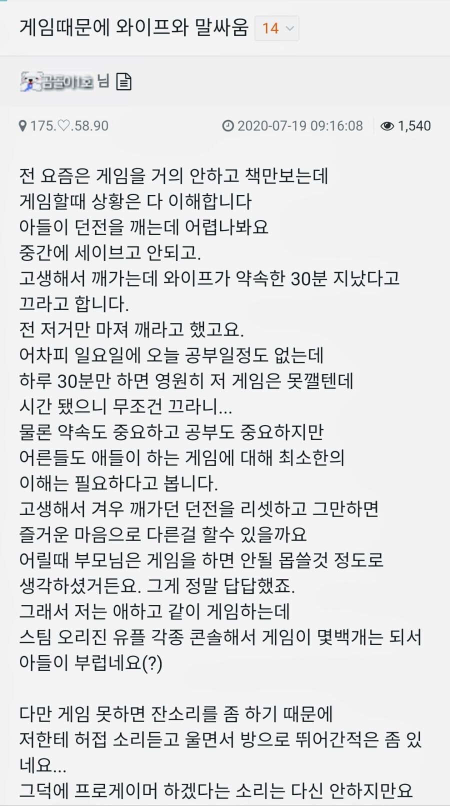 Subject   게임때문에 와이프와 말싸움