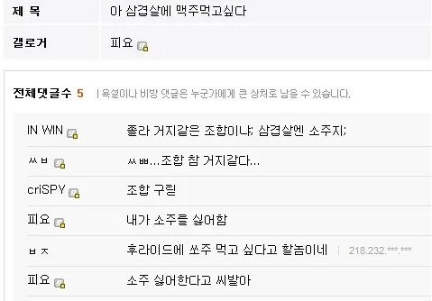 | Subject | 삼겹살에 맥주가 먹고싶은 디씨인 |