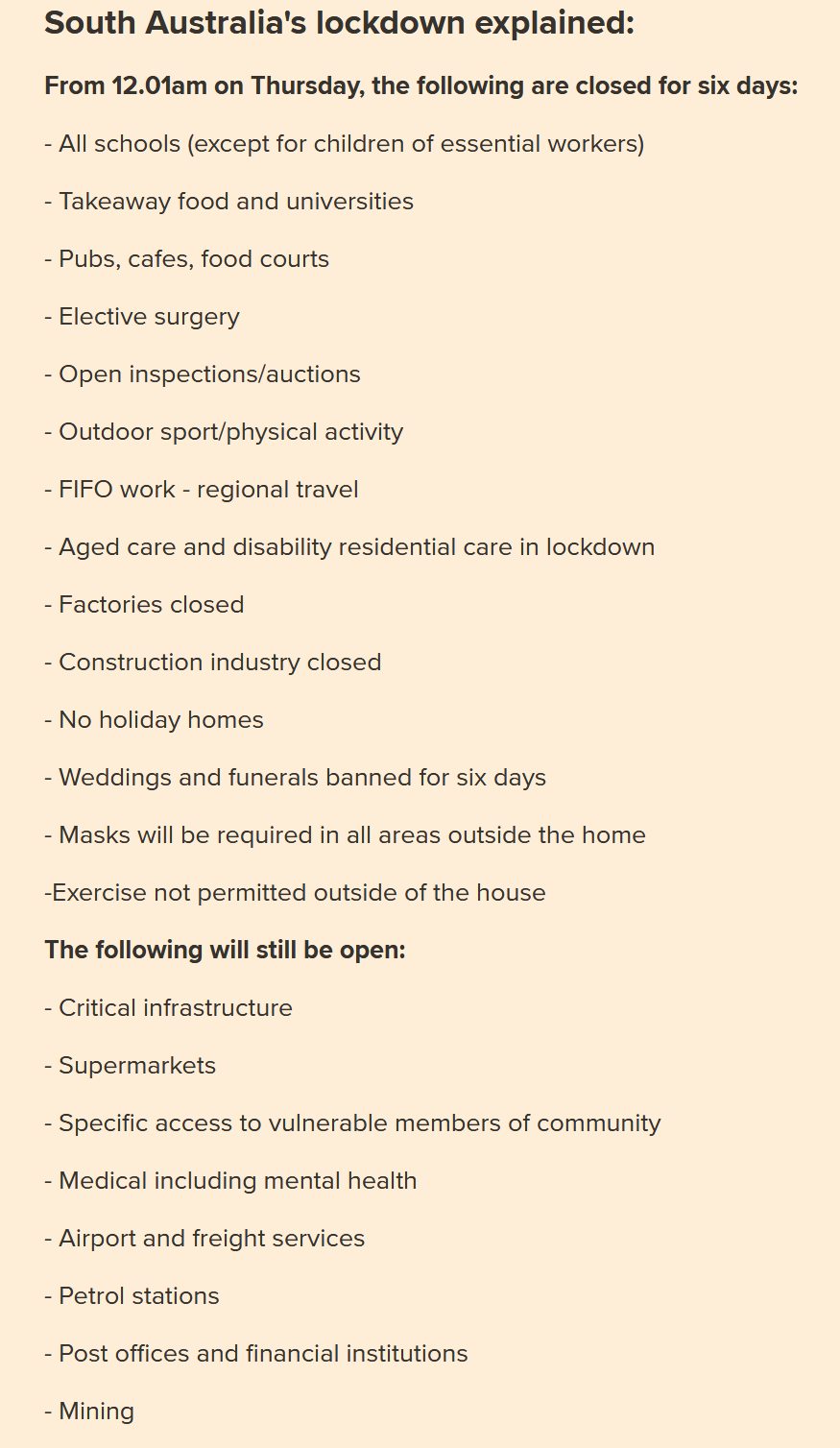 Link #1   https://www.9news.com.au/national/coronavirus-south-australia-update-six-day-lockdown-circuit-breaker-schools-closed-midnight/68a8d231-ca3a-4f0f-8cf9-2e24d8bba277