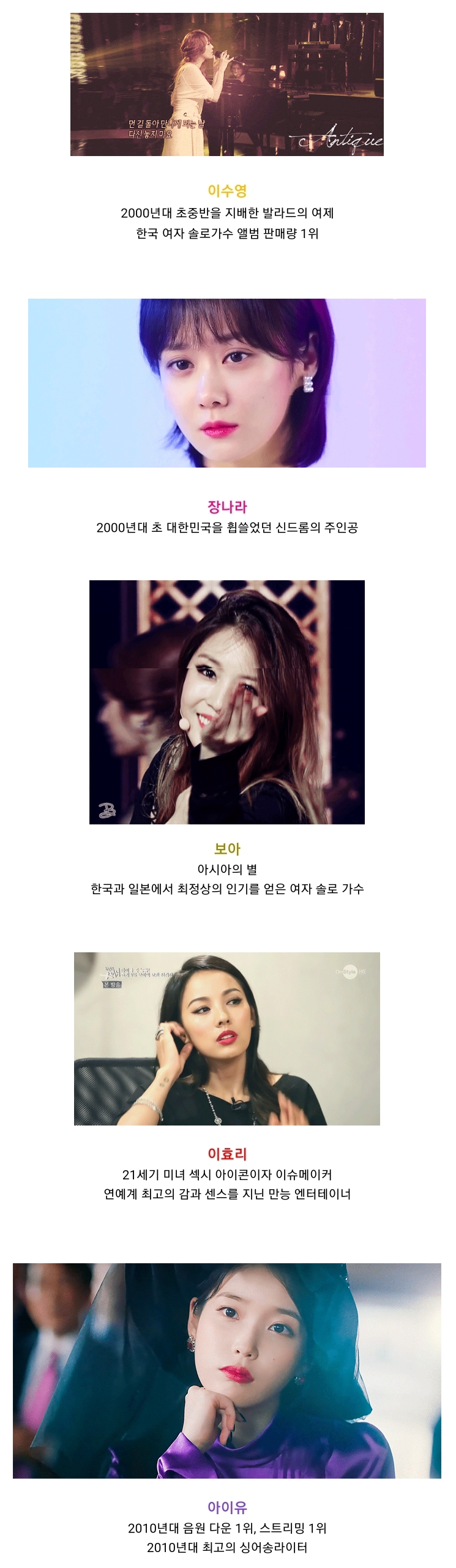 반박 불가능한 21세기 한국 솔로 여가수 탑 5