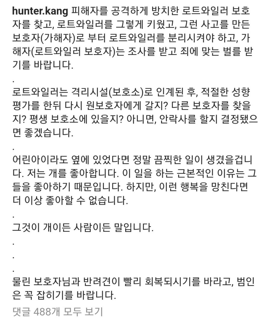Subject   이번에 터진 맹견 사고를 본 강형욱님의 메시지