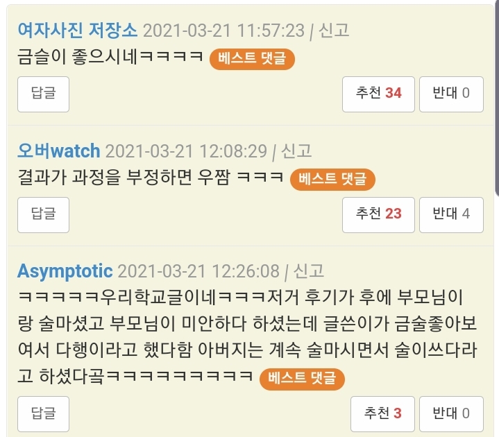 - 유머가 아닌 펌글, 영상 등 가볍게 볼 수 있는 글들도 게시가 가능합니다.