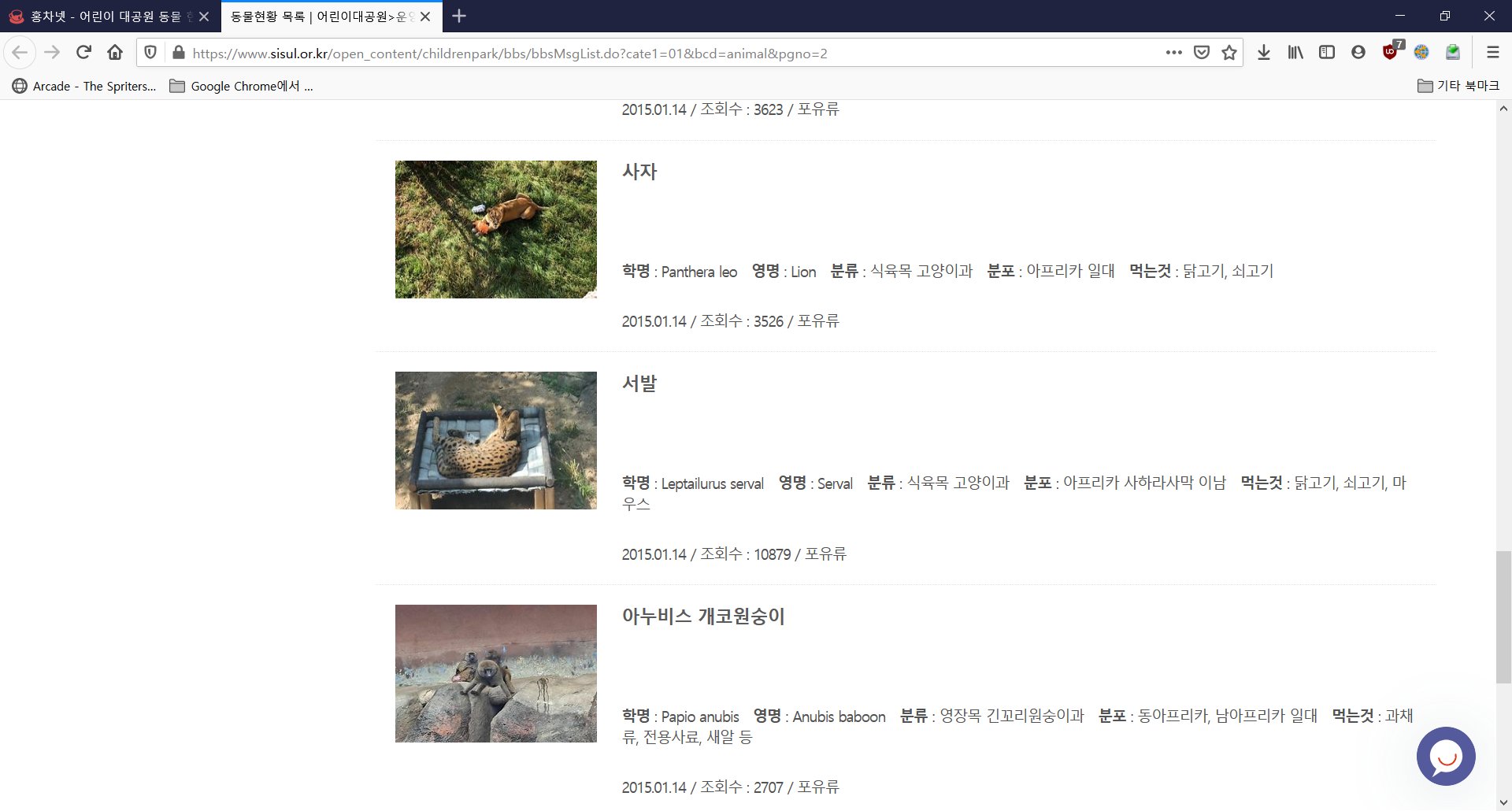 | Link #2 | http://www.sisul.or.kr/open_content/childrenpark/bbs/bbsMsgList.do?cate1=01&bcd=animal&pgno=2 |