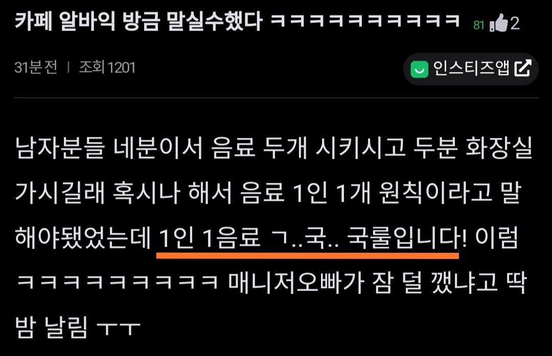1인 1음료는 국룰이죠 ㅋㅋㅋㅋ