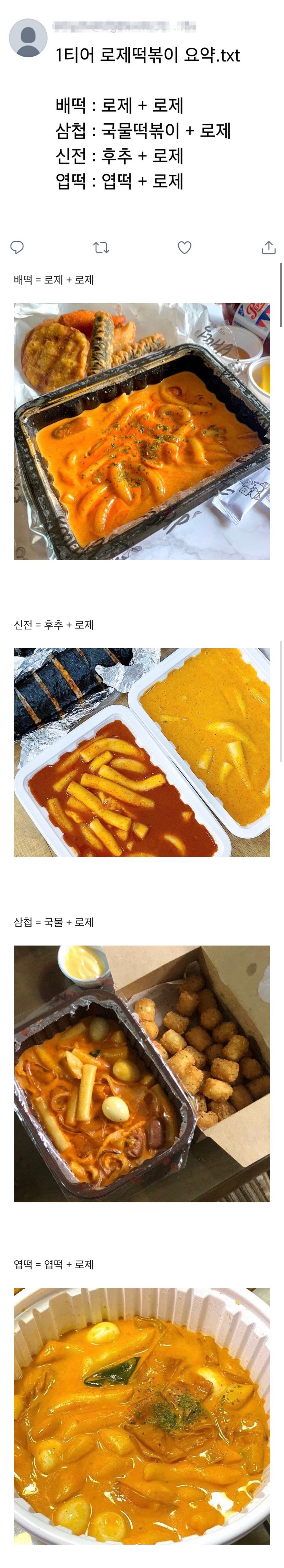 위에 네 개는 로제떡볶이가 유명한 집의 맛 조합이고요