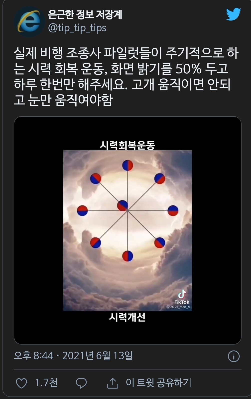 | Subject | 실제 비행 조종사 파일럿들이 주기적으로 하는 시력 회복 운동 |