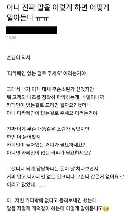 실제 들어본 말 따뜻한 아아 주세요 뜨거운 라떼 차갑게 해서 주세요 스무디 안 갈고 주세요 0
