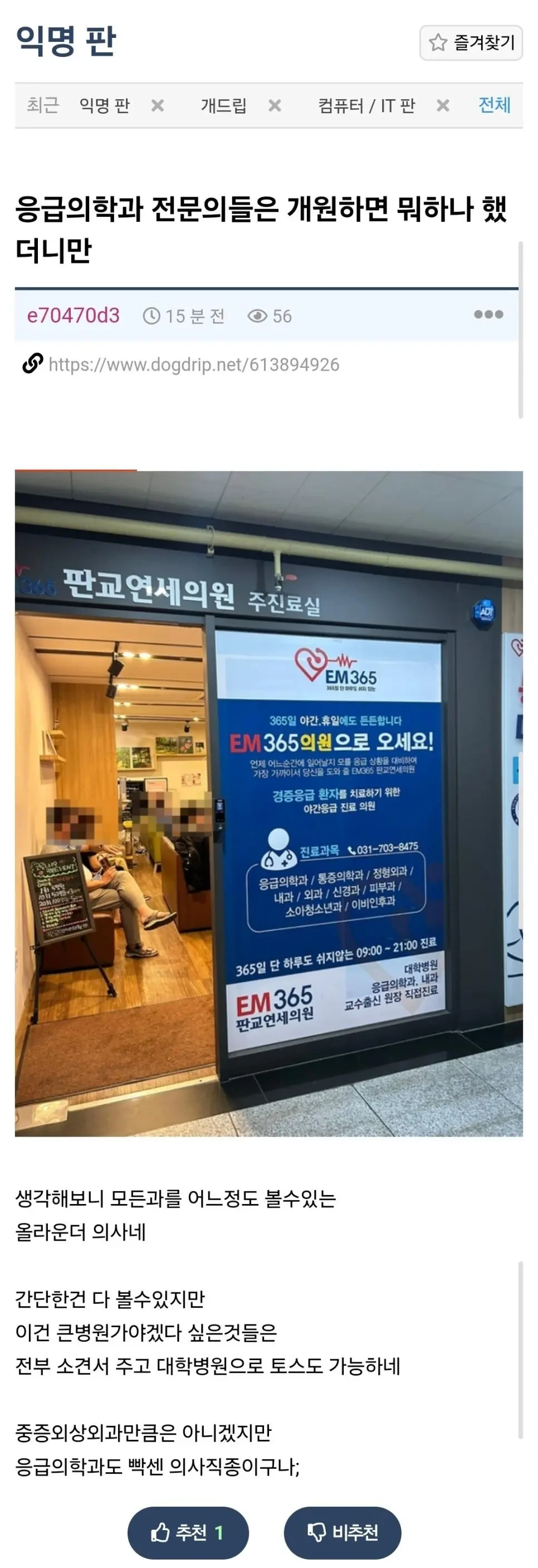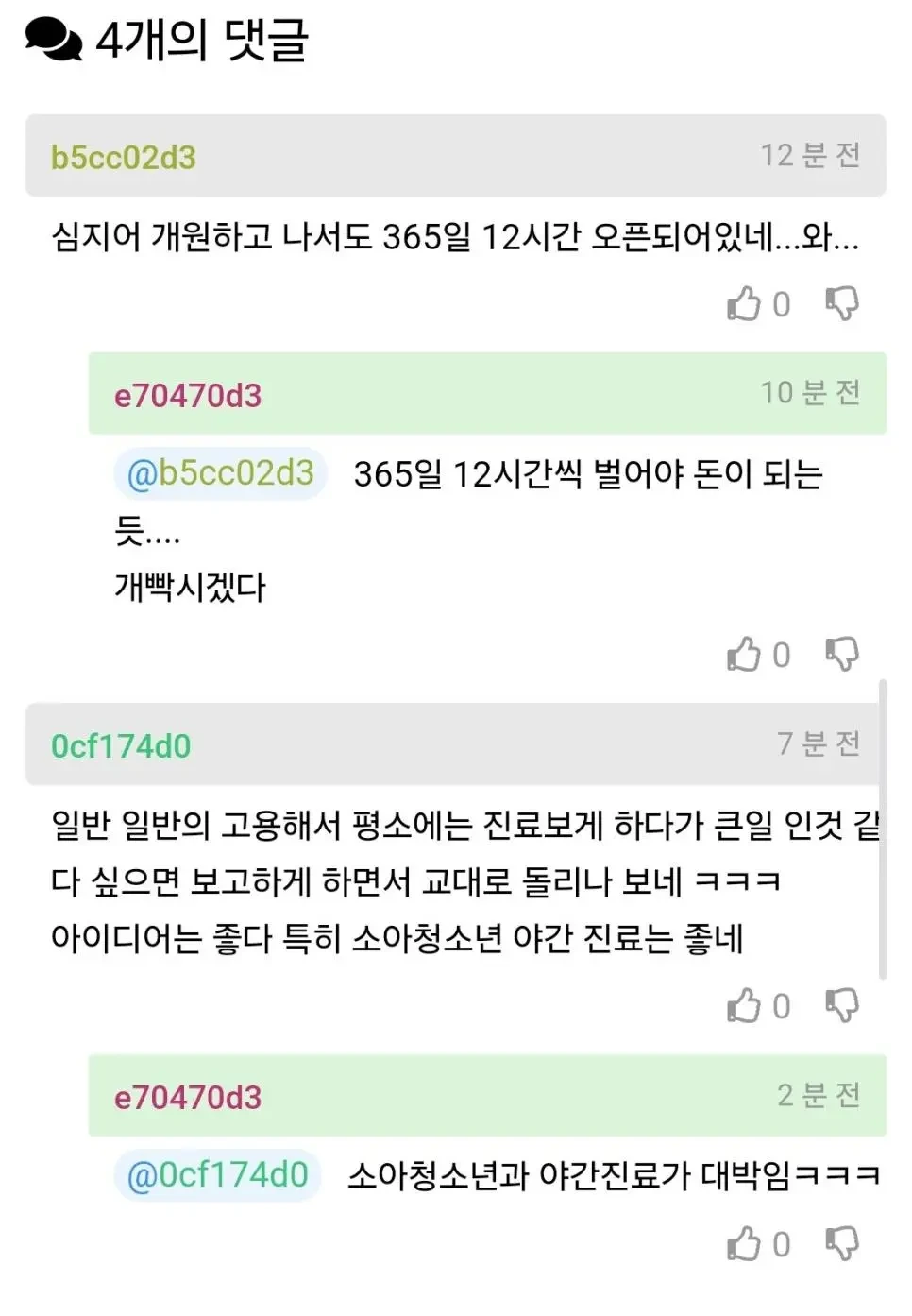 응과 의사가 개원하면 365일 문여는 병원을 연다....?
