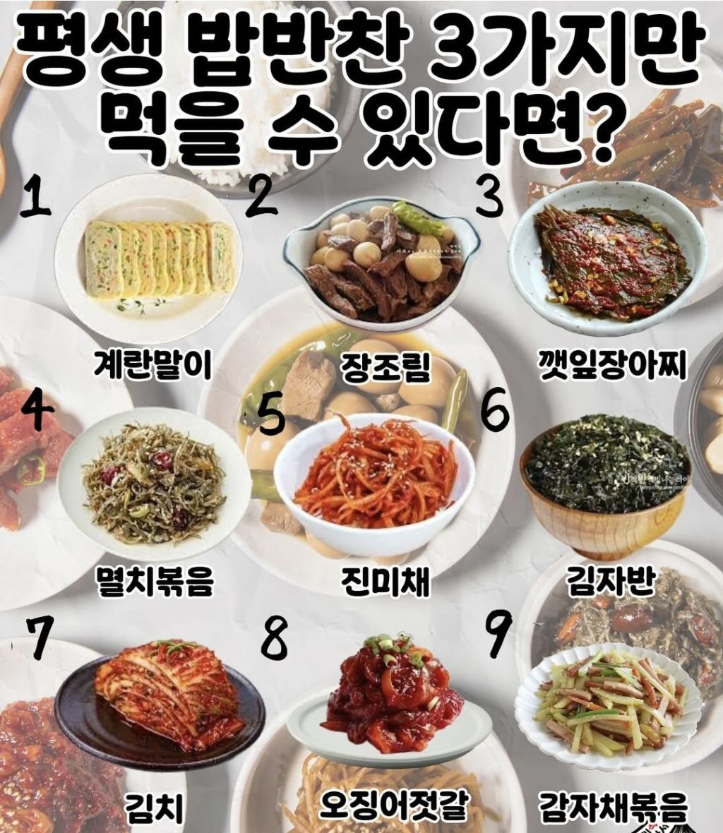 평생 밥반찬 3가지만 먹을 수 있다면?