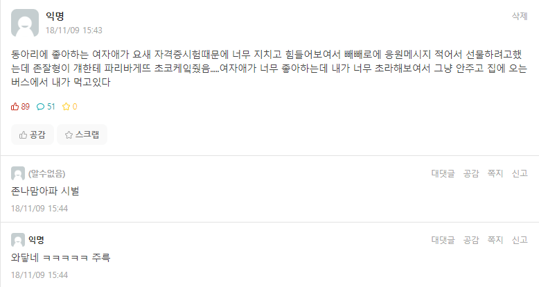 Subject   좋아하는 여자애한테 빼빼로 주려고 했는데..