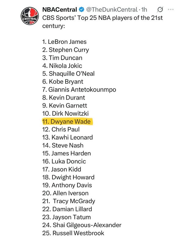 CBS Sports선정 21세기 NBA 선수 Top 25