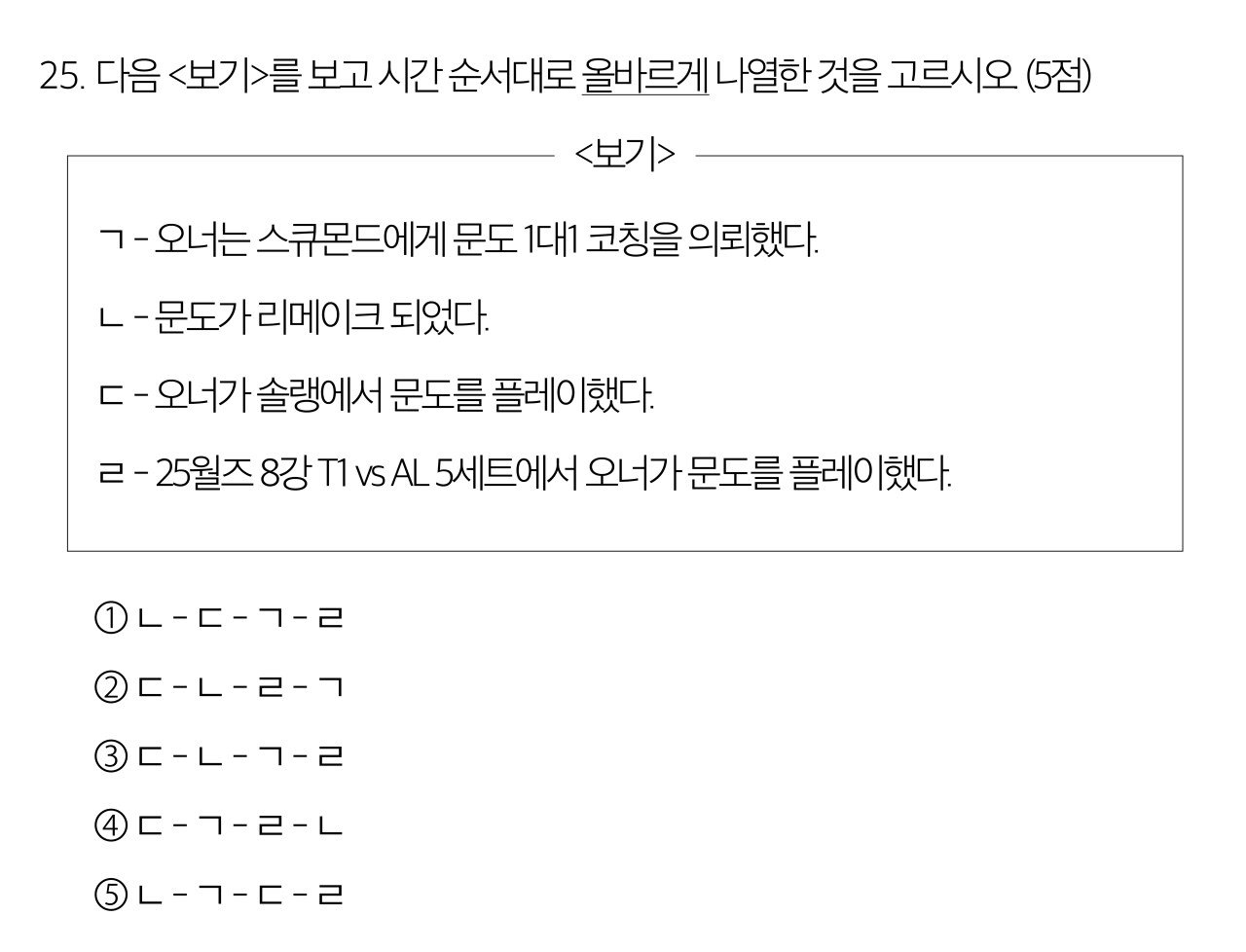 69989 [LOL] 다음 중 시간 순서를 올바르게 나열한 것은? 4 연구개발 25/11/04 578 0
