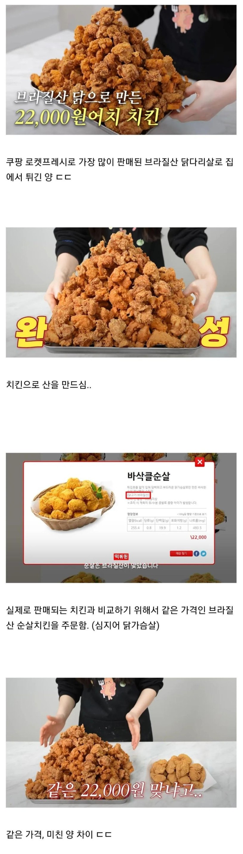 집에서 만든 치킨과 파는 치킨 양 차이