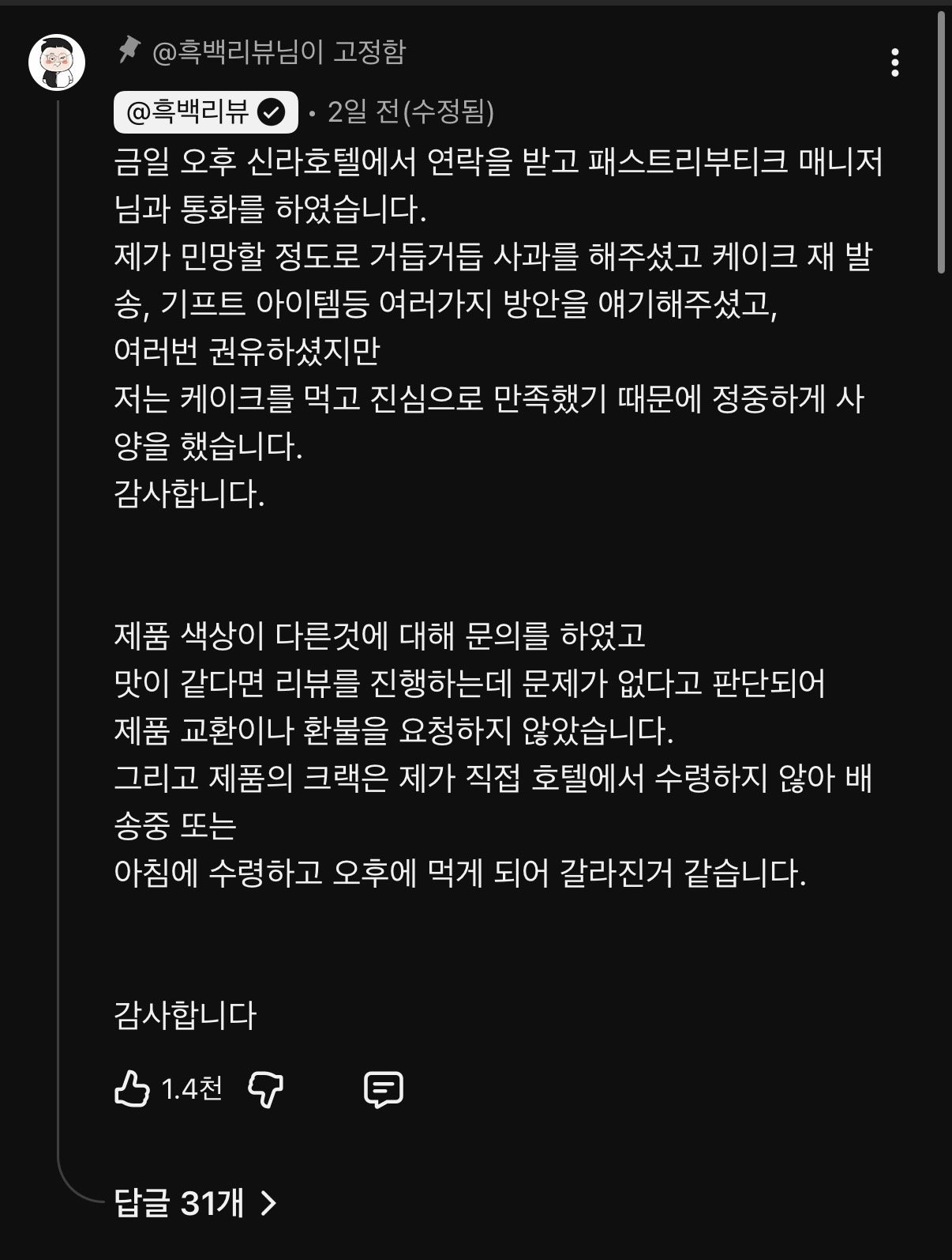 Subject   신라호텔 50만원 케이크 후기