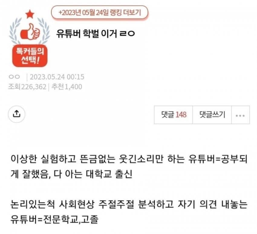 - 유머가 아닌 펌글, 영상 등 가볍게 볼 수 있는 글들도 게시가 가능합니다.