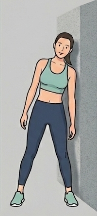 1. 튼튼한 벽에 한쪽 어깨를 수직으로 대고 선다.