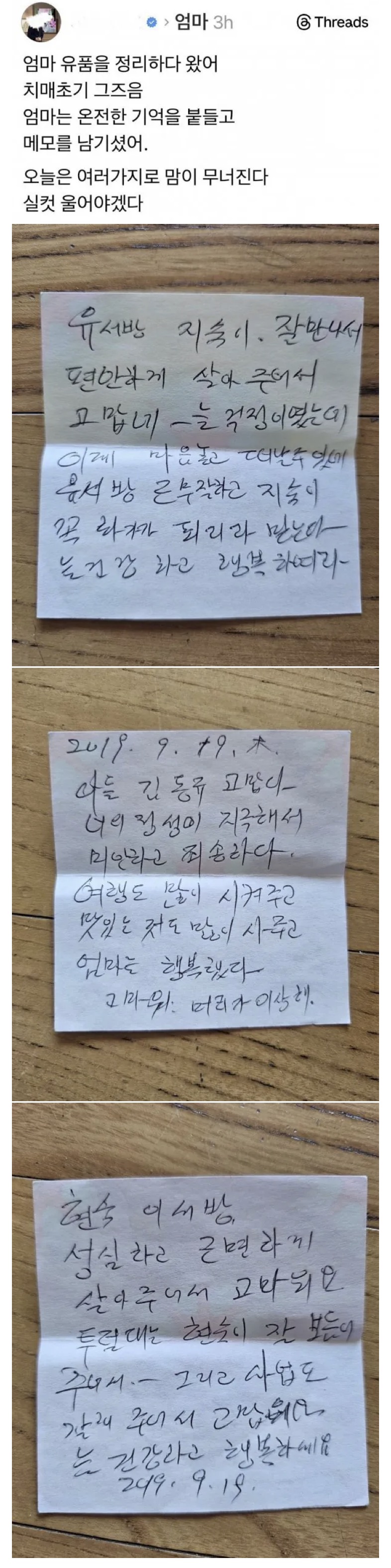 | Subject | 엄마 유품을 정리하다 나온 메모 |