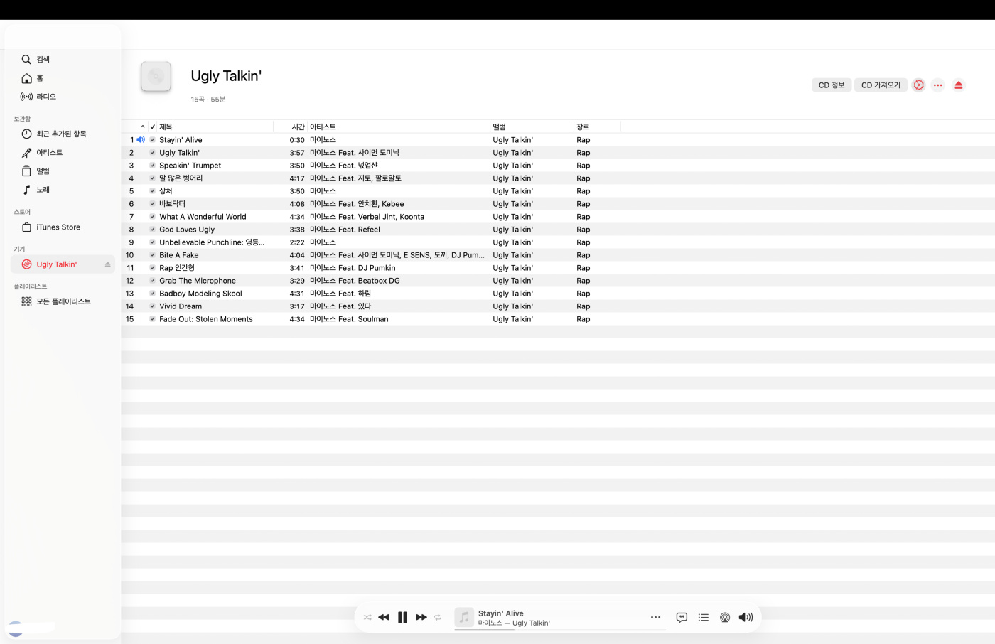 마이노스 - Ugly Talkin' [Artisan Beats]는 제가 팬이었던 소울 컴퍼니의 멤버들과 접점이 많았습니다. 특히 Minos와의 합작품 [The Lost files]이 유명하죠. 제가 합작품의 피지컬 CD를 가지고 있지 않아 대신 Artisan Beats가 영향력을 행사한 Minos의 1집을 꺼냈네요. [Rest In Peace Artisan Beats] #오늘의국힙 #_21 2