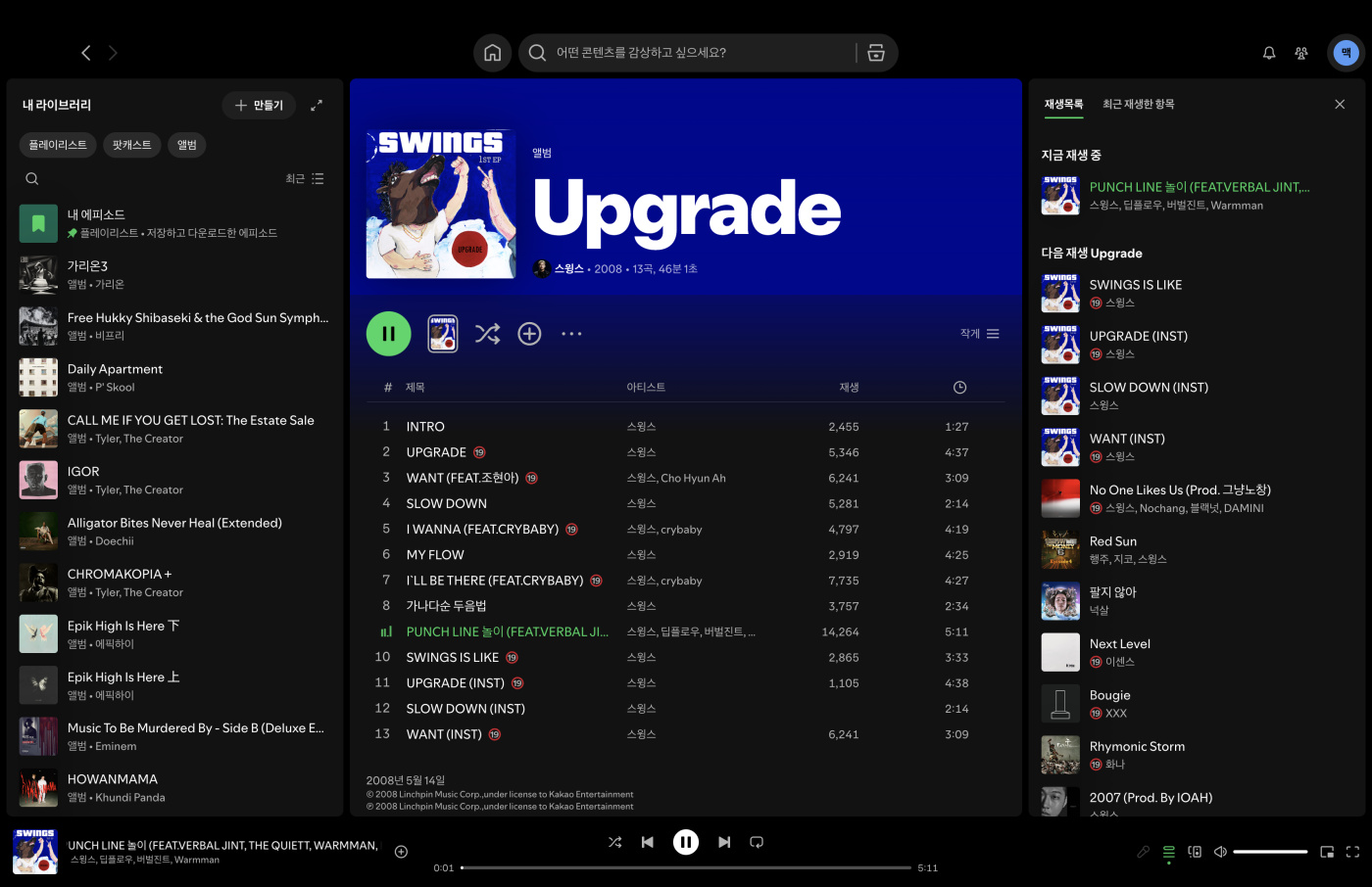 스윙스 - Upgrade EP 국힙 커뮤니티 전체를 [펀치라인] 논란으로 떠들썩하게 만든 전설의 스윙스 데뷔 EP. 이때만 해도 스윙스가 [한국의 Big L]이 되는 줄 알았는데 말입니다... #오늘의국힙 #_26 1