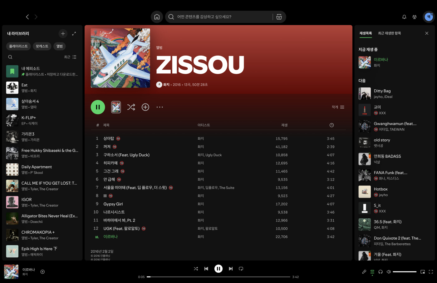 [화지] 지난 주중에 한대음이 있었으니 남은 연휴 및 방학 마지막은 한대음 스페셜로 가보겠읍니다. 한대음이 사랑한 랩허, 화지. (2015 1집 EAT, 2017 2집 ZISSOU 수상) 혹자는 고평가 된 것이 아닌가 하기도 하고, 관련해서 디스전도 일어날 정도였지만, 화지 이후에는 이만한 인물이 아직도 안 나오고 있는 것은 명백합니다. #오늘의국힙 #_27 2