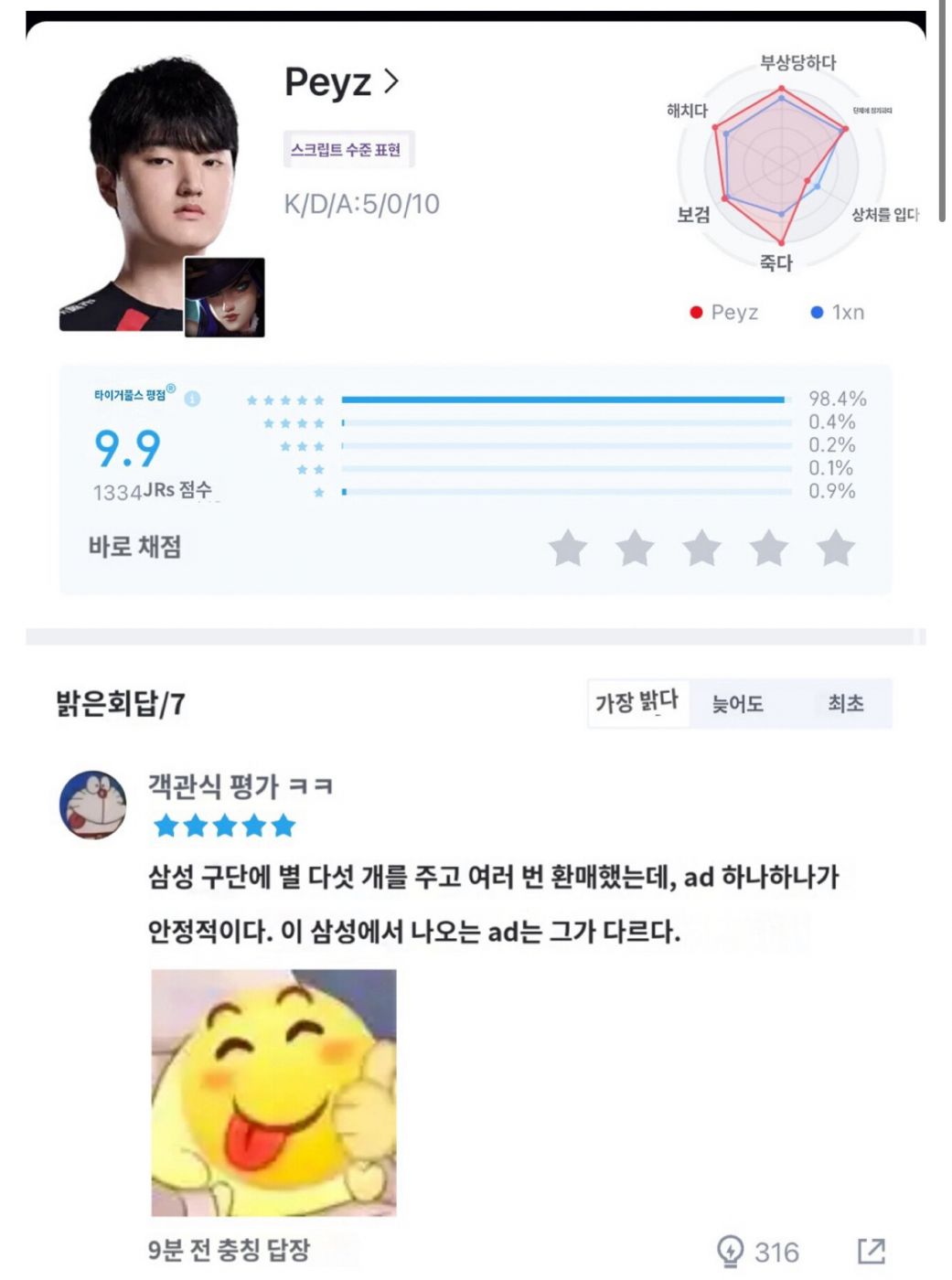 젠지 그 유리하던걸 뒤집히나 했더니 해프닝으로 지나가고 경기 잘 마무리 했군요. 듀로는 오늘 1세트 알리는 일단 나쁘지 않았습니다.