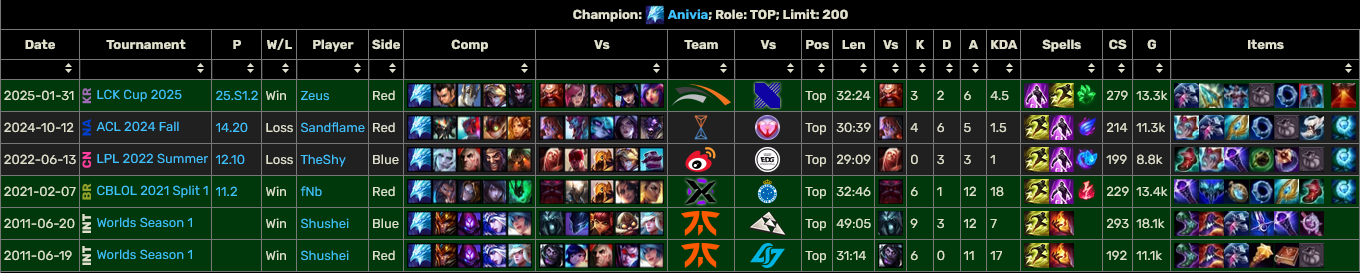 Anivia가 Top에서 사용된 것은 단 6차례밖에 없습니다.