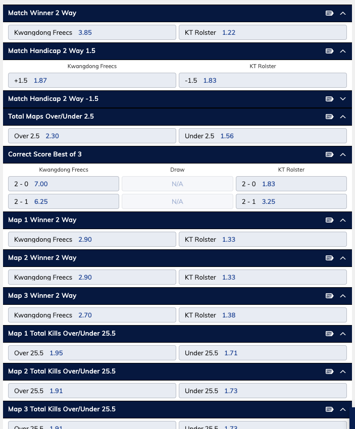 특히 주도권과 굴리기를 좋아하는 LCK를 보는 상황에서 Total Kills Over/Under 베팅은 못참겠네요. LCK에서 합산 25킬이 나오는 게임이 몇이나 될라나?