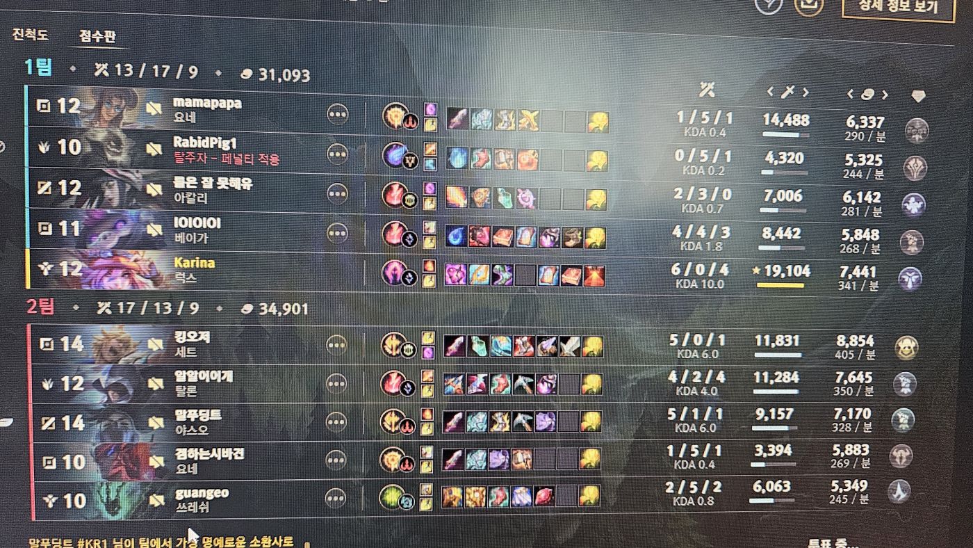 원딜 골드가 저만큼 차이나는데 한타에서 저렇게 깔끔하게 발리는건 또 첨봄